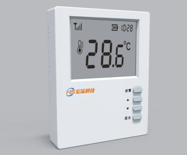 在典型户内明装温度传感器,通过LORA/NB-IoT通讯传至平台对数据整理分析,利用分析结果进行调控。